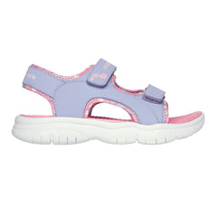 Delight in the sun and surf with Skechers Flex Splash - Heart Galore. This lightweight sport sandal features a synthetic upper with adjustable dual strap closures, padded ankle strap, and a cushioned comfort footbed.