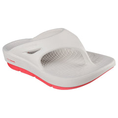 Relax in specialized comfort and style wearing Skechers GO RECOVER® Refresh - Contend. This athletic recovery thong sandal features a synthetic upper with premium Hyper Burst® foam and Arch Fit® support redistributes pressure for impact reduction.