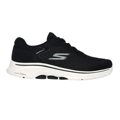 Walk in tech supported comfort with Skechers GO WALK 7™ - The Construct. This walking style features an engineered mesh upper with stretch laces, Skechers Air-Cooled Goga Mat™ insole, lightweight ULTRA GO® cushioning, and high-rebound Hyper Pillar Technology™ for added support.