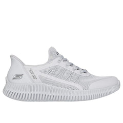 Sporty style and flexible comfort combine in Skechers Hands Free Slip-ins®: BOBS Geo Lite - Fixed Edge. Designed with our exclusive Heel Pillow™, this laced slip-on features a knit and synthetic upper and a cushioned Skechers Memory Foam™ insole. BOBS® from Skechers® is committed to saving the lives of pets in need.