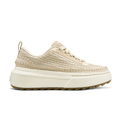 - Knit overlay upper with whipstitching details and lace-up front