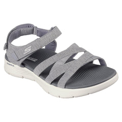 Walk with breezy style and comfort with Skechers GO WALK® FLEX Sandal. This strappy sandal features a heathered jersey knit upper with an ankle strap closure, contoured Goga Mat® footbed and lightweight ULTRA GO® cushioning.