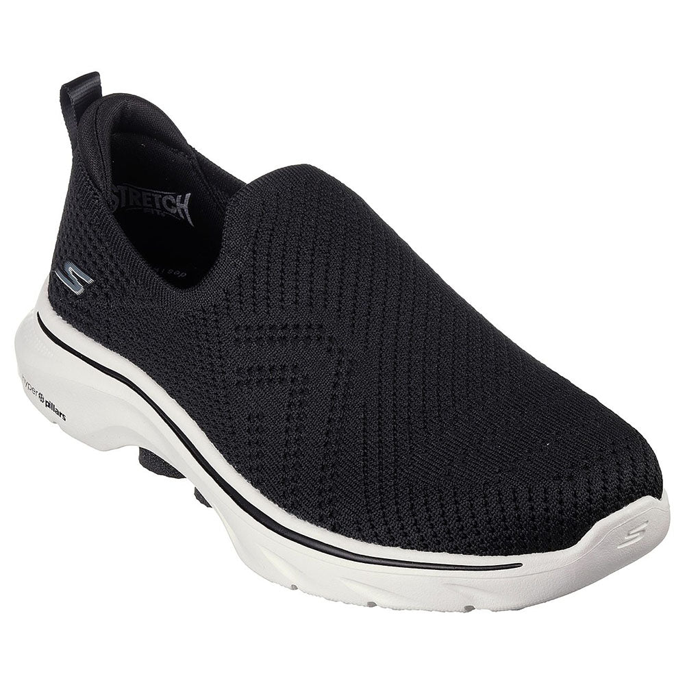 Walk in easy-wearing comfort with Skechers GO WALK 7™ - Amina. This laceless vegan design features a engineered knit Stretch Fit® upper with a Skechers Air-Cooled Goga Mat™ insole, lightweight ULTRA GO® cushioning and high-rebound Hyper Pillar Technology™ for added support.