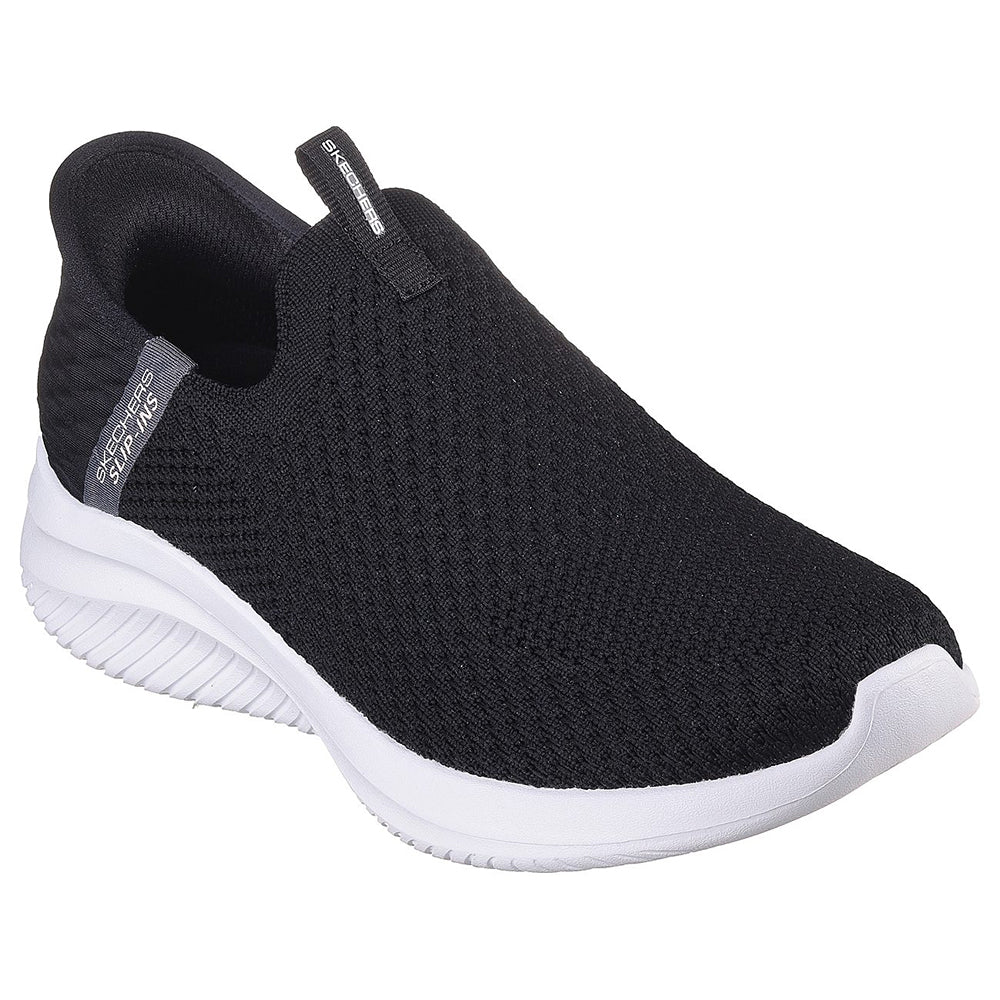 TOUCHLESS FIT™ Feet forward comfort and sleek sporty style combine in Skechers Hands Free Slip-ins™: Ultra Flex 3.0. Designed with our exclusive Heel Pillow™. This style features a Stretch Fit® engineered knit upper with a cushioned Skechers Air-Cooled Memory Foam® insole.
