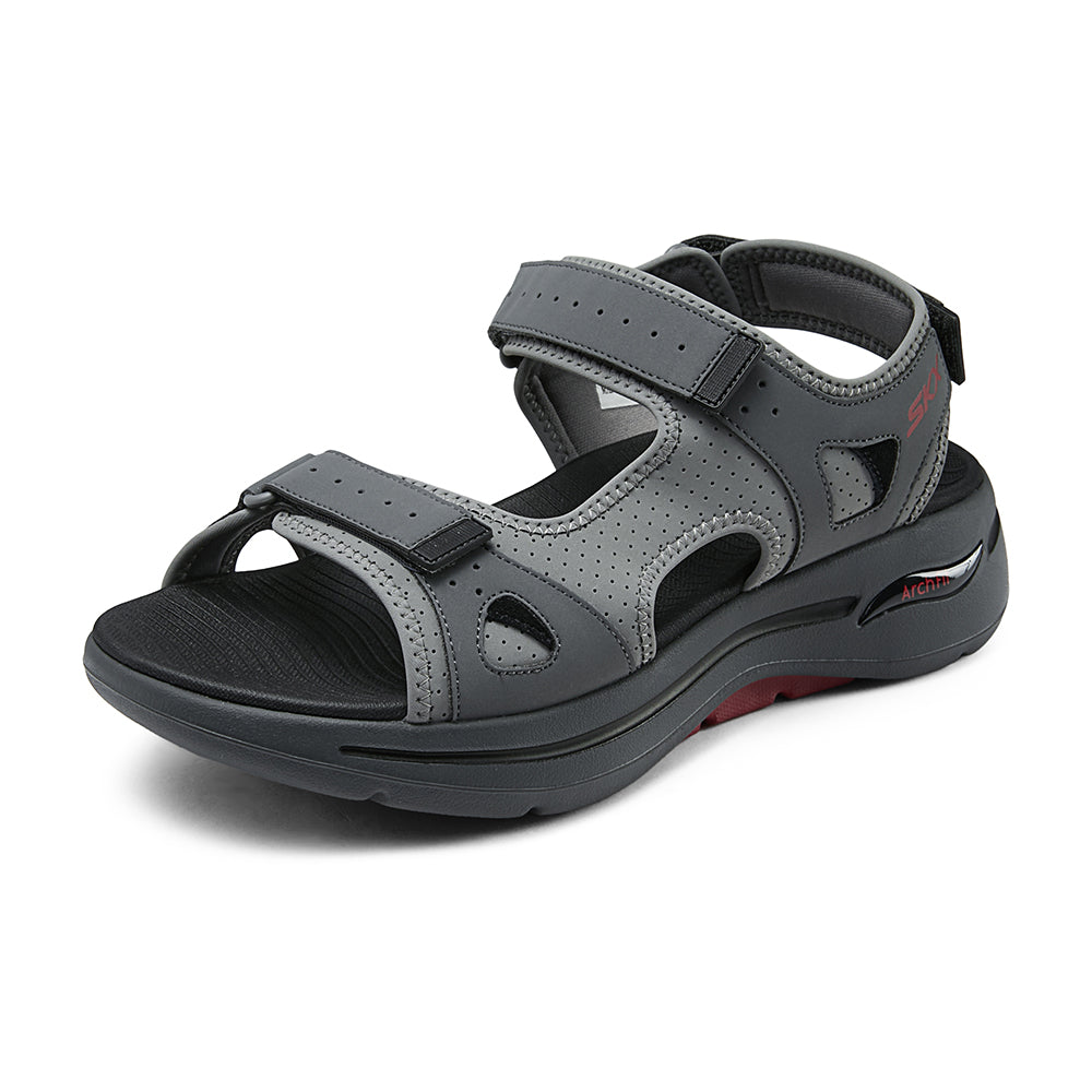 Warm-weather style and supportive comfort combine in Skechers GO WALK® Arch Fit® Sandal - Mission II. This quarter strap sandal has been granted the APMA Seal of Acceptance. Featuring an adjustable upper with lightweight ULTRA GO® cushioning and a contoured Goga Mat® footbed with podiatrist-certified Arch Fit® support.