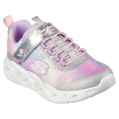 Description: Brighten your steps with heart-filled style wearing Skechers S-Lights® Flutter Heart Lights® - Rainbow Bestie. This light-up fashion sneaker features a synthetic and sparkle mesh upper with rainbow satinOkay, I understand. Please provide the English sentences you want me to translate.