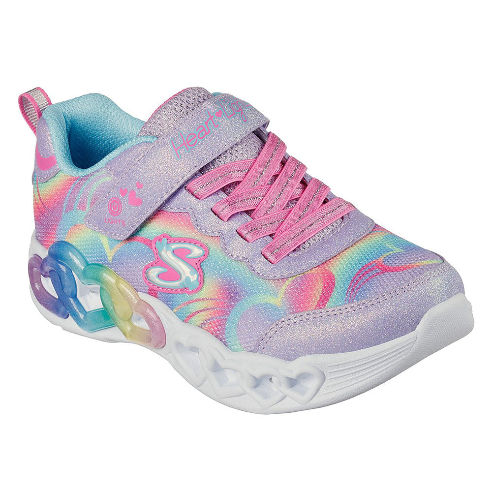 Lấp lánh và tỏa sáng trong niềm vui kỳ diệu khi mang Skechers Heart Lights® Infinite Heart Lights. Thiết kế phát sáng Colorful Comfort® này có phần trên bằng lưới cầu vồng in hình trái tim với lớp phủ kim tuyến tổng hợp, dây đeo mu bàn chân có thể điều chỉnh và đế giữa phát sáng được điêu khắc với chi tiết 'chuỗi trái tim'.